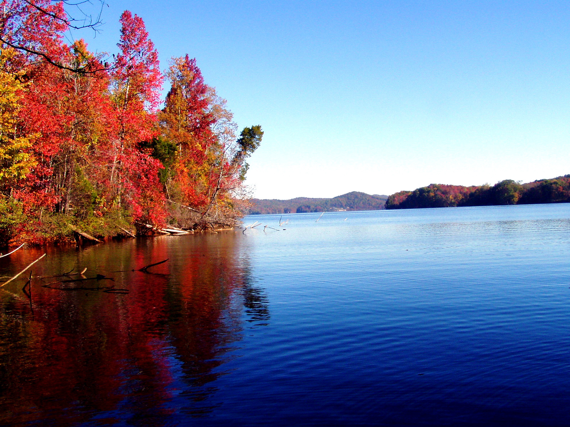 There are lakes and lake scenes just like this all over the world. But it's rare to have fall color, blue sky and calm water come together so nicely.