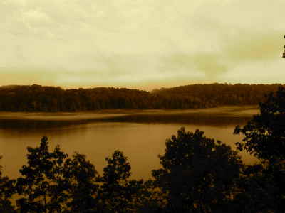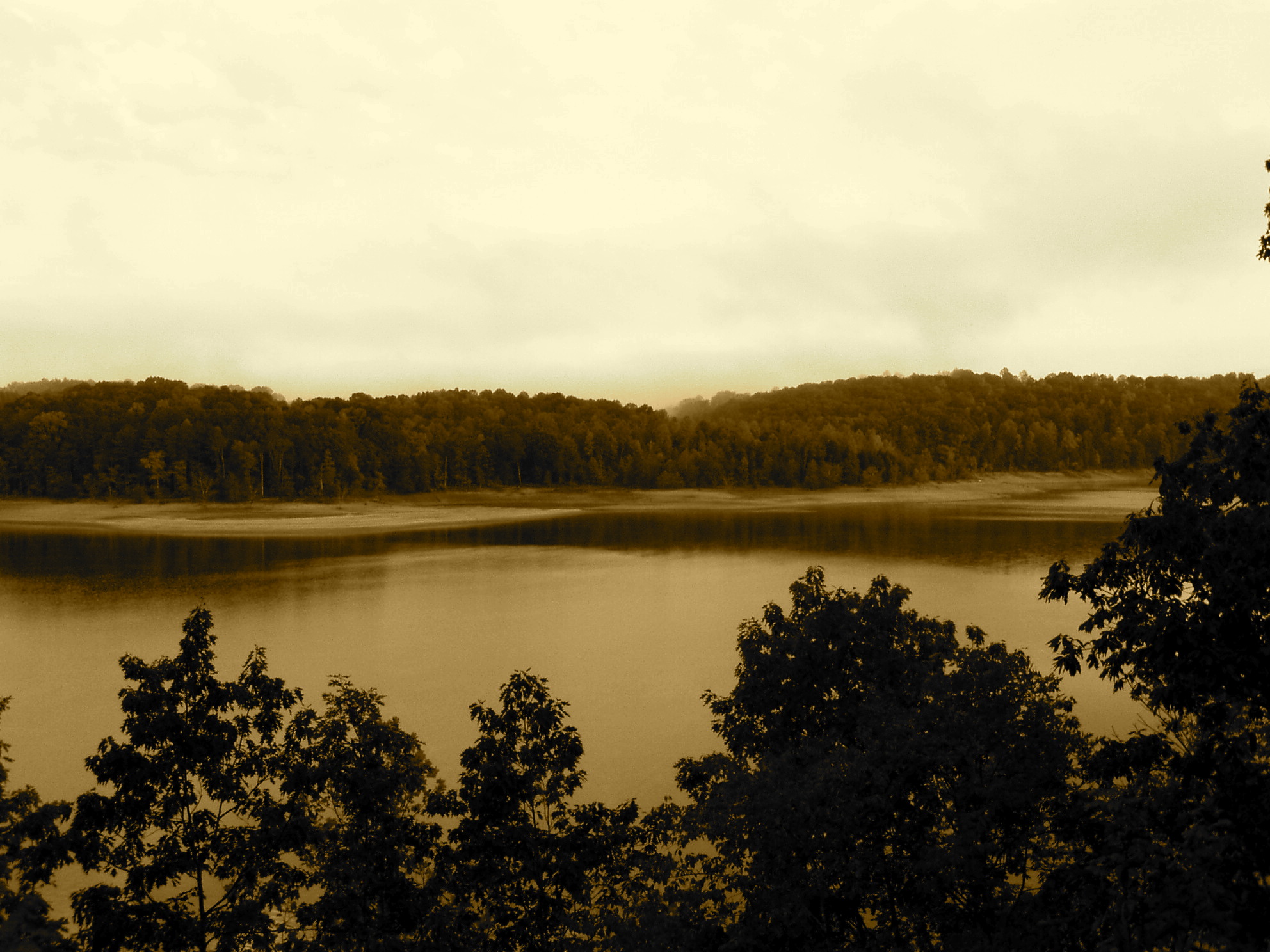 This looks like it could have been taken in 1908 rather than 2008. The shot seemed to have a natural sepia tone to it so we let Photoshop take us all the way there. I liked the symmetry between the muddy sky and everything else below the horizon. The photo was taken near a boy scout camp.