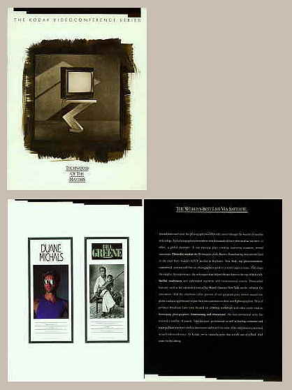 A brochure that was created to inform educators about the opportunity to take part in the Kodak VideoConference series.Communicated through posters on campuses, the project enabled me to promote the work of leading photographers like Duane Michaels, Arnold Neuman, Mary Ellen Mark, Gordon Parks, Jay Maisel and others. I got to meet many of them in person as well